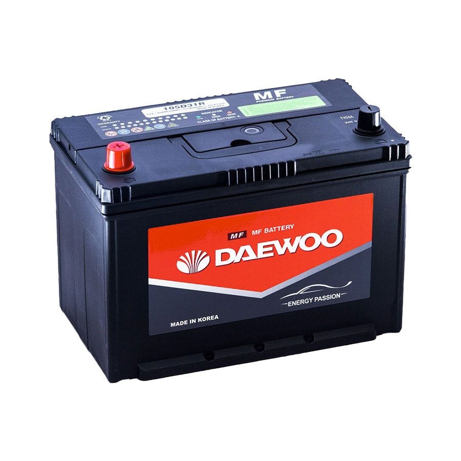 - Ắc quy Daewoo 105D31R 12V 90AH được gọi là ắc quy miễn bảo dưỡng, MF (Maintenanece Free Batteries), khô, kín khí, Calcium, thuộc dòng sản phẩm Daewoo MF Battery, nhập khẩu chính hãng Hàn Quốc, sản xuất bởi Daewoo Battery, sản phẩm được acquycaocap.vn phân phối & mua bán sỉ lẻ chính hãng, bảo hành 9 tháng.