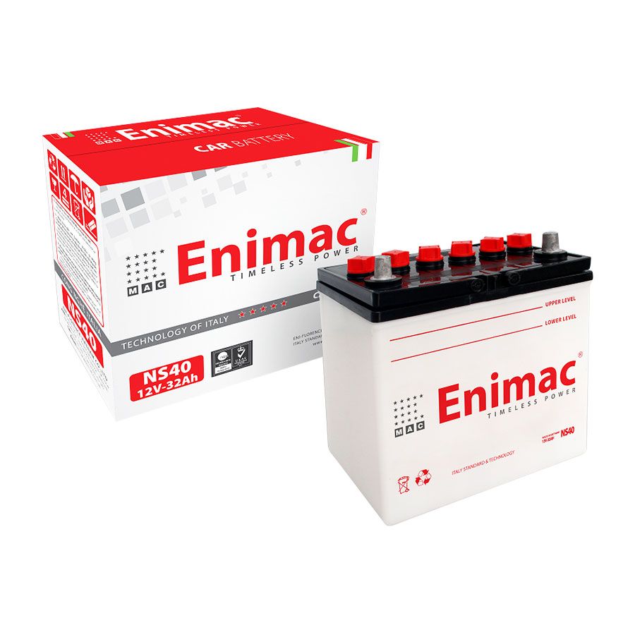 - Bình ắc quy Enimac NS40 12V 35AH còn gọi là ắc quy nước, ắc quy truyền thống, Conventional Batteries, gọi chung là ắc quy nước truyền thống, thuộc dòng sản phẩm ắc quy nước Enimac.